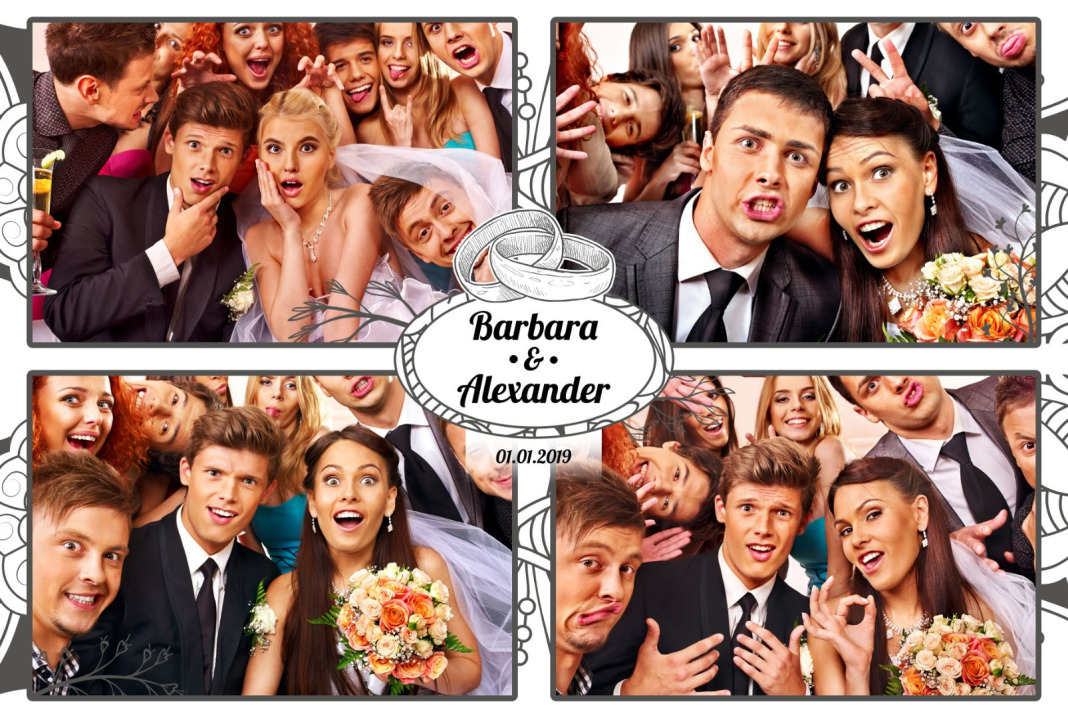 La location comprend des accessoires fun (moustaches, lunettes, chapeaux) ainsi que la personnalisation du cadre.