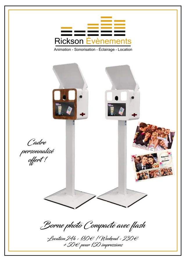 Compacte et facile à transporter, la borne est composée de 3 éléments sous housses de transport. L'installation est accessible à tous grâce à la notice fournie. Les photos sont prises avec un appareil professionnel Canon pour un rendu époustouflant.