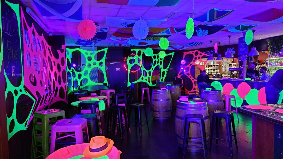 Nous sommes spécialisés dans les soirées fluo "tout en un" ! En plus de la mise en lumière UV complète, nous pouvons agrémenter toute la salle de déco murale ou suspendue en lycra. Il est également possible de vous fournir différents goodies ainsi que du maquillage fluo pour les distribuer à votre clientèle.